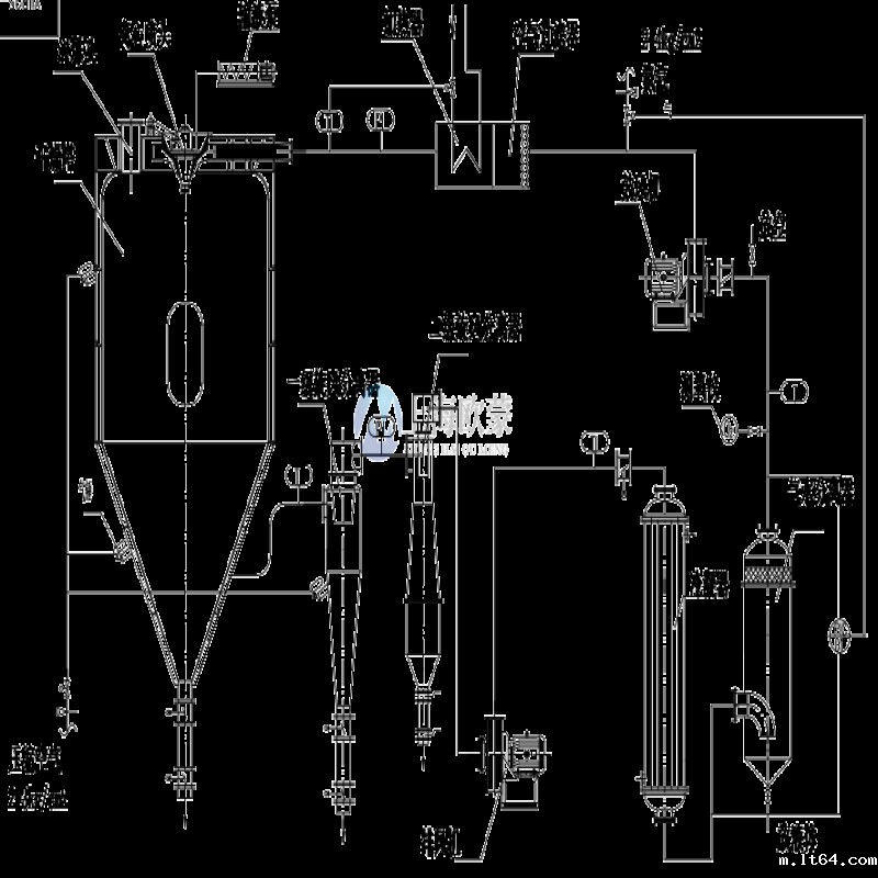 干燥机组由进风过滤系统、空气加热和热风分配器系统、干燥主塔、进料及雾化系统、高效旋风、布袋除尘器等组成。