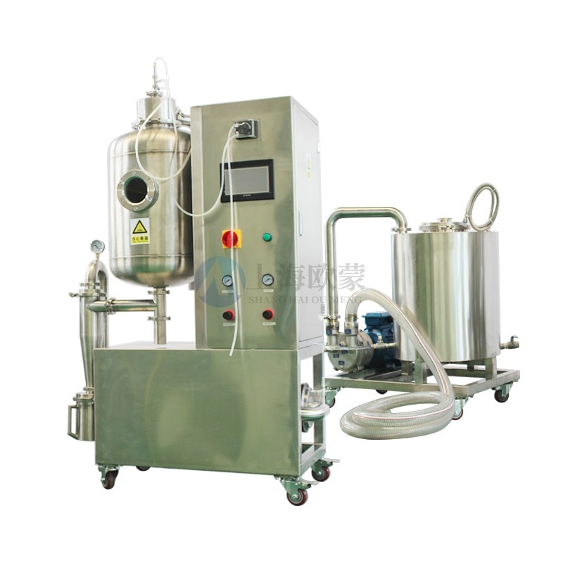 1、喷雾干燥整个实验过程在真空环境里完成,大大降低了物料干燥温度,解决了热敏性物料喷雾干燥的难题。