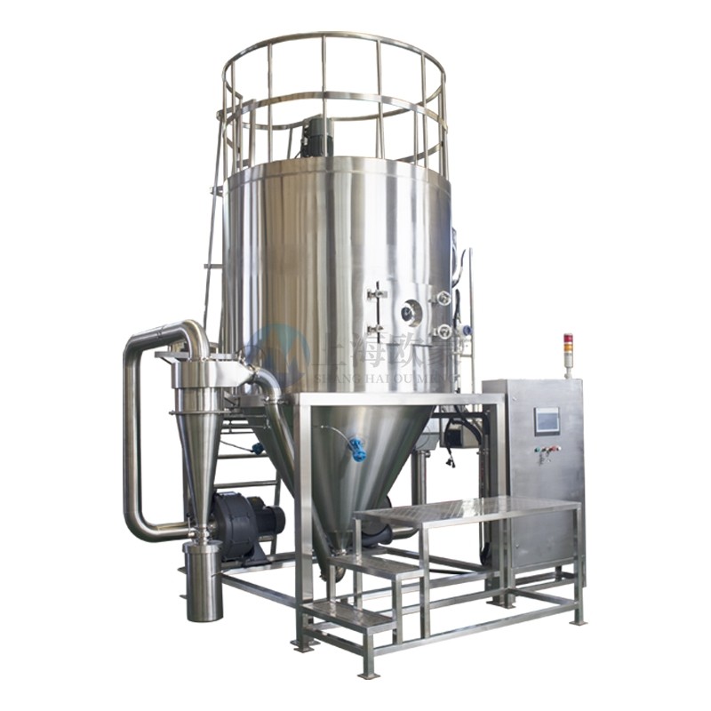 高速离心关于新利18App | 高效喷雾干燥设备 | 工业级快速干燥解决方案:干燥机为开式循环,并流式,离心式雾化。干燥介质空气经过初、中效空气过滤器过滤后根据操作指令由鼓风机吸取再经加热器加热通过高效过滤器的热风分配器进入喷雾干燥主塔。液体物料根据操作指令经过蠕动泵,进入高速旋转的离心喷头,在离心力作用下被分散成小雾滴。在喷雾干燥主塔内,小雾滴与热风在充分接触,沿其特定路径进行热交换后被干燥成为产品,然后通过旋风分离器实现分离,固体物料被收集,气体介质再经过过滤后被排出。整套喷雾系统易清洁、无死角,符合GMP要求。